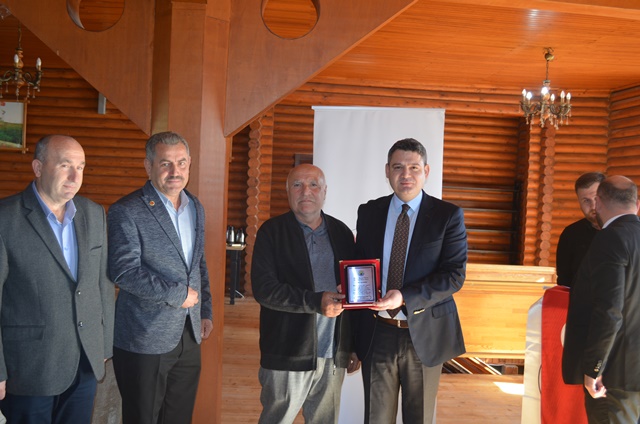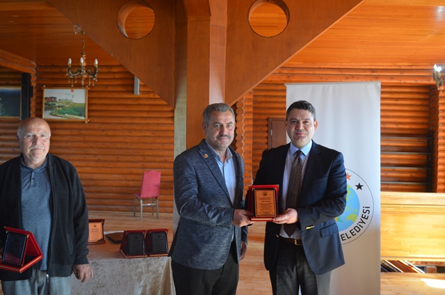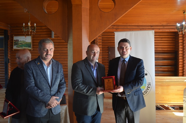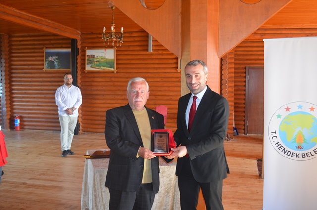 Hacı Hasan Gökpınar ve Hendek Belediye Başkan Yardımcısı Hasan Altuntaş tarafından plaket takdim edildi.