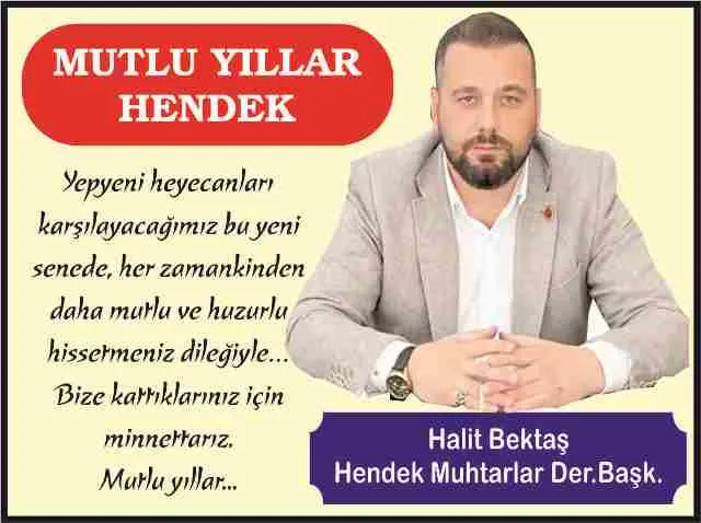 Hendek Muhtarlar Derneği Başkanı Halit Bektaş yayınladığı yeni yıl mesajında, bize katkılarınız için minnettarız diyerek mutluluklar diledi.