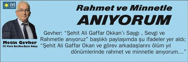 İYİ Parti meclis üyesi adayı Metin Gevher şehit müdürümüzü rahmet ve minnetle andı.