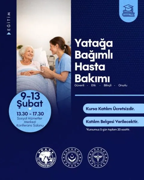 Evinde hasta bakanlar ve bu alanda kendini geliştirmek isteyen vatandaşlarımız ücretsiz eğitime katılabilir. Eğitim sonunda katılım belgesi verilecektir.