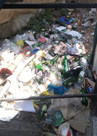 İLÇE MERKEZİNDE İÇKİ ŞİŞELERİ ÇÖPLÜĞÜ